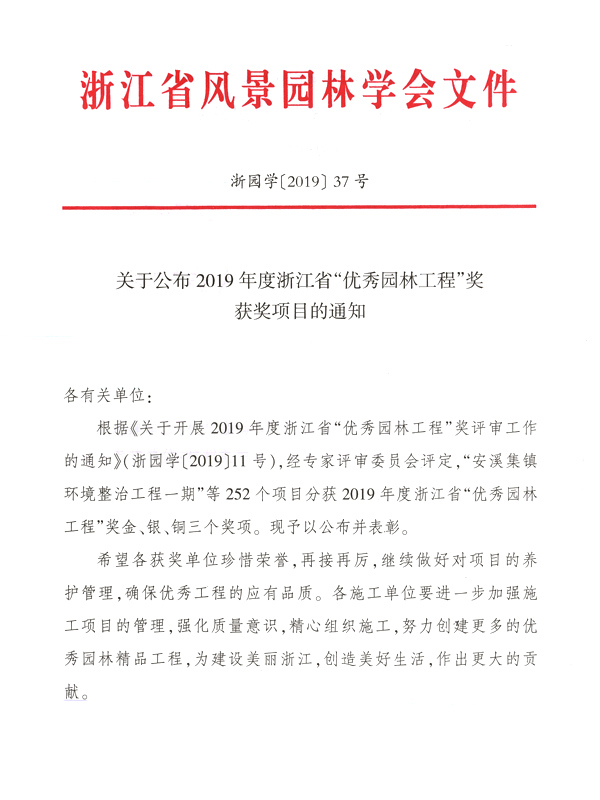 Silver Award for excellent landscape architecture of Zhejiang Province in 2019