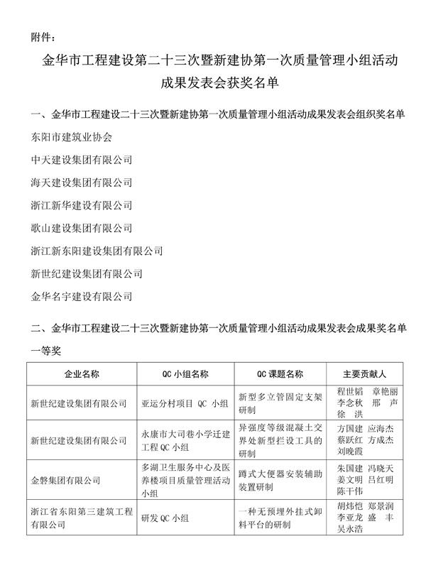 Prev:2020 Xianju Hebu bridge Zhejiang Municipal Excellent QC second prize