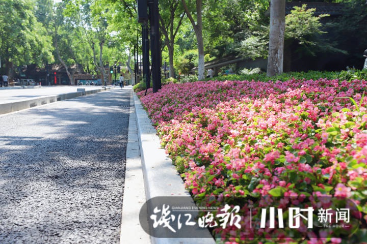 靠近南山路的區(qū)域,增設(shè)了景觀小品,如文化銅墻、文化銅磚等,以歷史為引線,結(jié)合西湖、河坊街歷史文化底蘊,打造展示城市歷史與街區(qū)風(fēng)光的景觀長廊。沿線綠化提升同步建成,兼?zhèn)洹邦佒怠迸c“功能”。