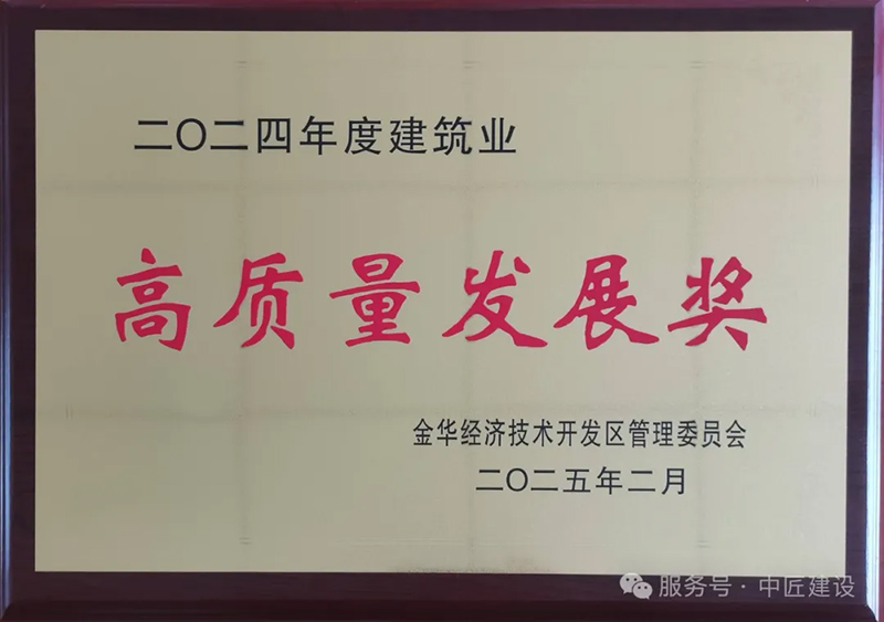會(huì)上,開發(fā)區(qū)對(duì)過去一年中涌現(xiàn)出的杰出企業(yè)進(jìn)行了表彰,其中,中匠園林建設(shè)有限公司憑借其在建筑業(yè)的卓越表現(xiàn)與高質(zhì)量發(fā)展實(shí)踐,榮獲了“2024年度金華開發(fā)區(qū)建筑業(yè)高質(zhì)量發(fā)展獎(jiǎng)”。這一榮譽(yù)不僅是對(duì)中匠建設(shè)在2024年高質(zhì)量經(jīng)營(yíng)成果的認(rèn)可,更是對(duì)其在推動(dòng)行業(yè)進(jìn)步、促進(jìn)地方經(jīng)濟(jì)發(fā)展方面所做努力的肯定。