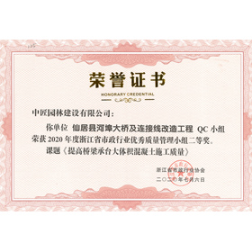 2020仙居河埠大橋浙江省市政優(yōu)秀QC二等獎